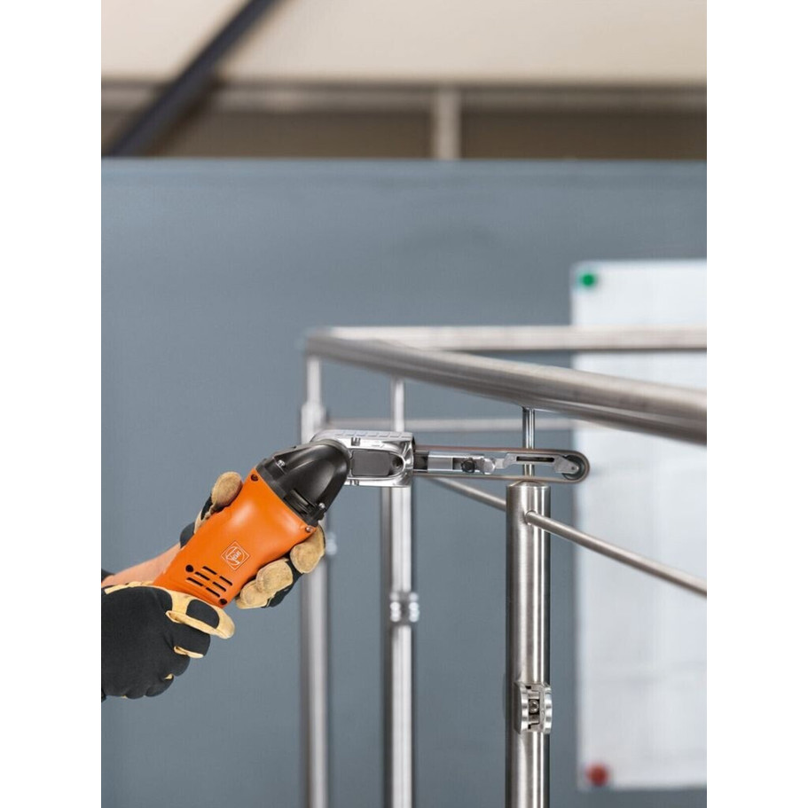 Das Fein BF 10-280 E Start-Set ist eine professionelle Bandfeile, die speziell für Anwendungen in Gewerbe und Industrie entwickelt wurde. Mit ihrer leistungsstarken Bauweise und den 800 Watt ist sie ideal zum Feilen, Polieren und Schleifen einer Vielzahl von Materialien wie Metall und Holz. Dieses Set, das zur bewährten Fein BF Serie gehört, zeichnet sich durch seine hohe Bandgeschwindigkeit von 32 m/min und eine maximale Leerlaufdrehzahl von 28.000 U/min aus, was präzise und effiziente Arbeitsergebnisse garantiert. Die orangefarbene Elektrofeile wird über Netzbetrieb mit 230 V versorgt und bietet mit einer Kabellänge von 4 Metern ausreichend Bewegungsfreiheit bei der Bearbeitung von Rohren.