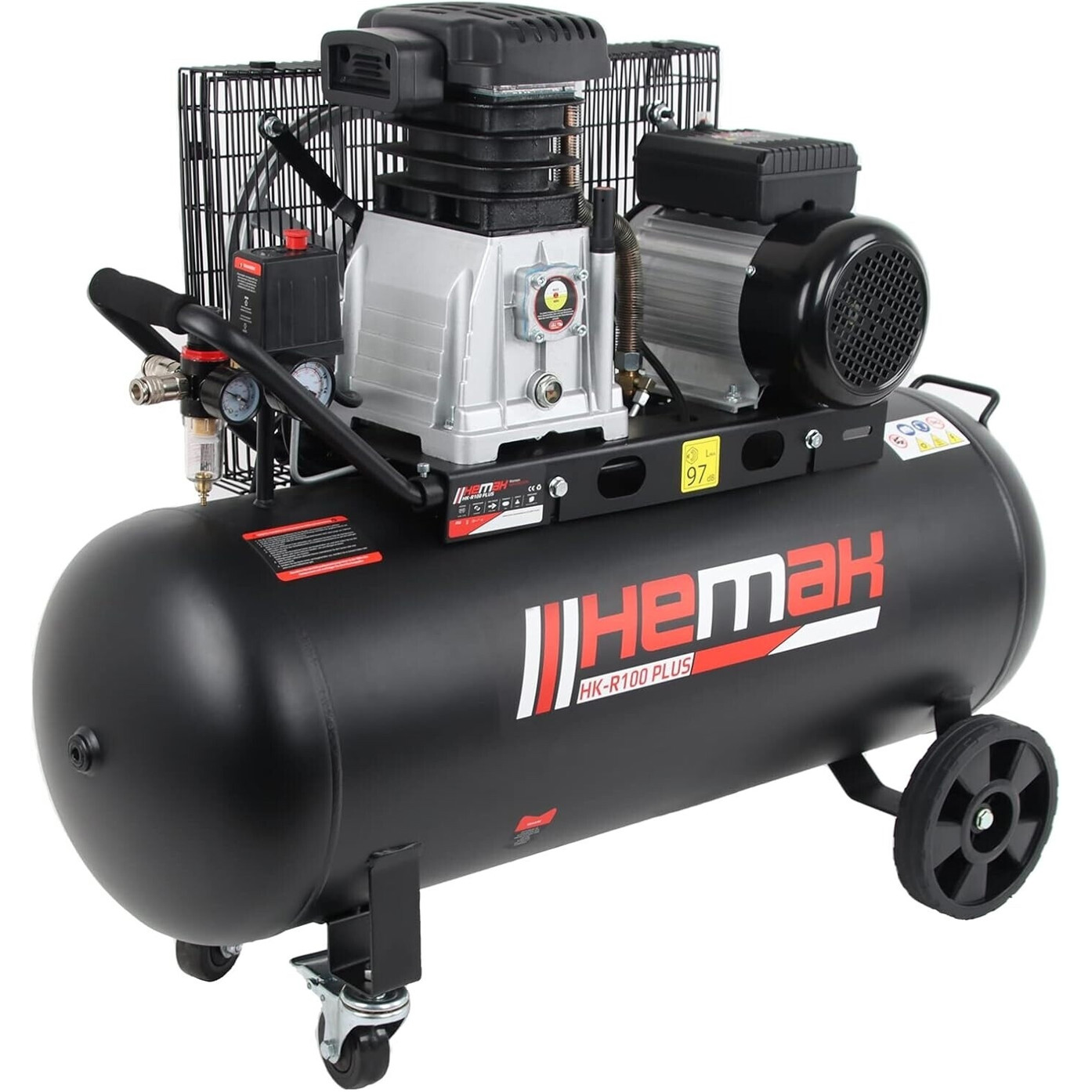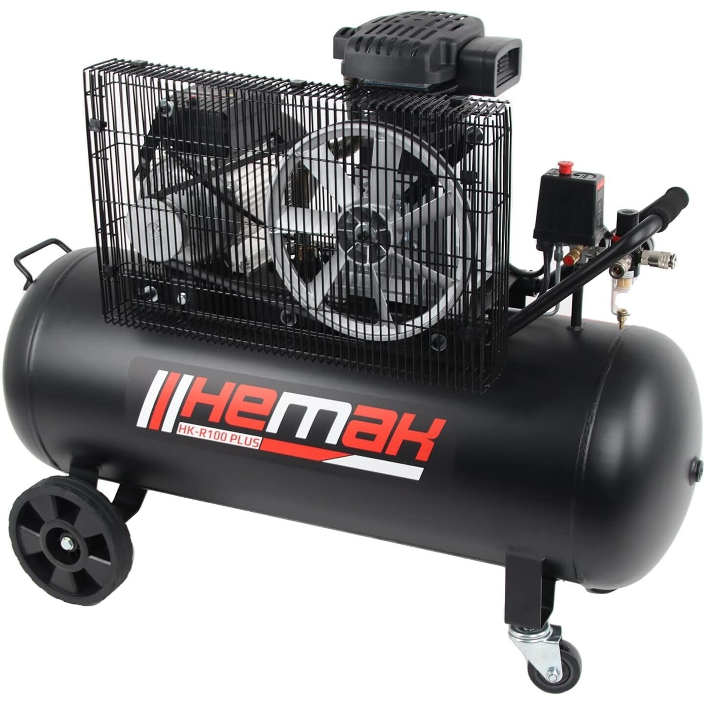 HEMAK - HK-R100+ - Mobiler Kolbenkompressor - Schwarz, 10 bar, 100 Liter