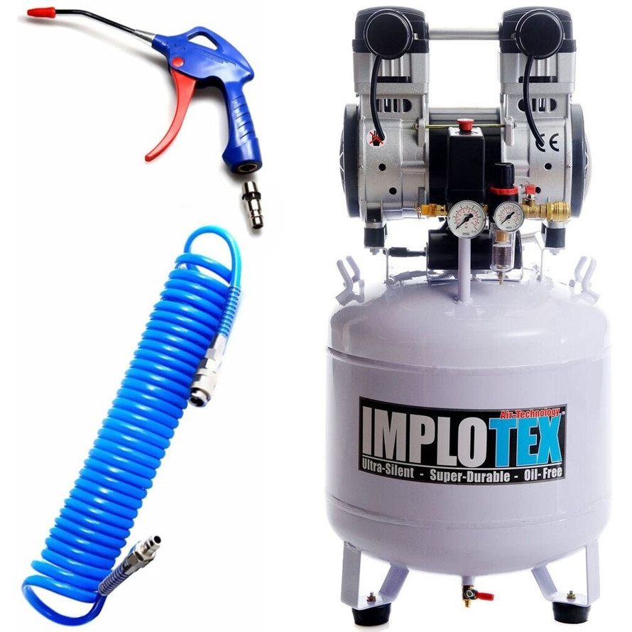 Ein ölfreier Kompressor wie der Implotex Flüsterkompressor benötigt weniger Wartung und liefert sauberere Luft, was besonders vorteilhaft für empfindliche Anwendungen ist.