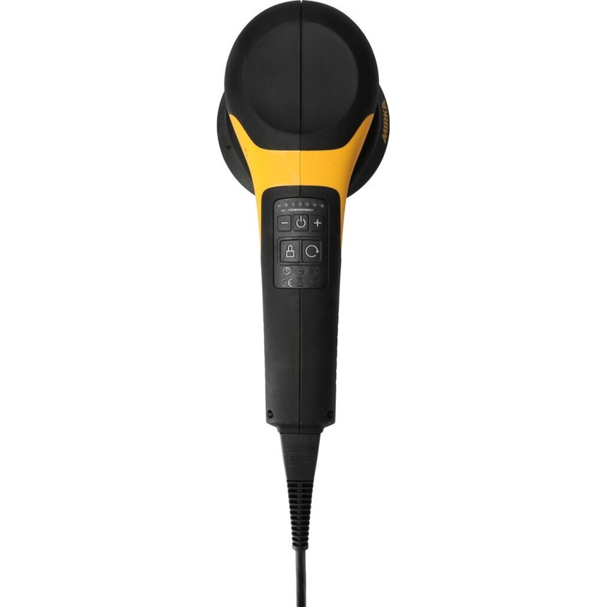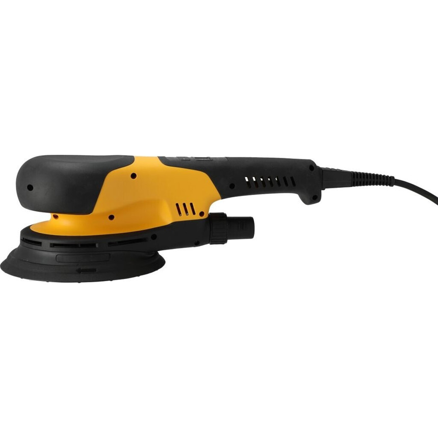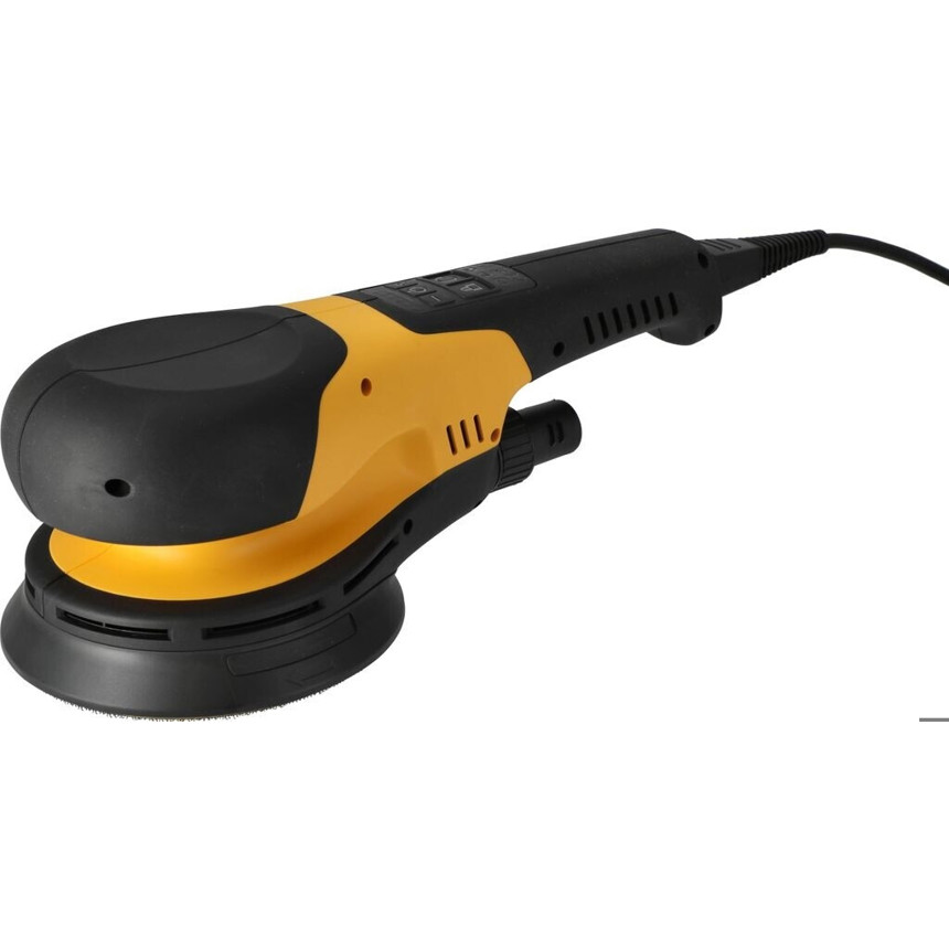 Dieser Exzenterschleifer überzeugt durch seine hochwertige Verarbeitung und ein geringes Gewicht von nur 1,8 kg, was ein ermüdungsfreies Arbeiten ermöglicht. Die gelbe Gehäusefarbe unterstreicht dabei das professionelle Erscheinungsbild des Geräts. Die Energieversorgung erfolgt über Netzbetrieb (220–240 V), was eine konstante Leistung gewährleistet.